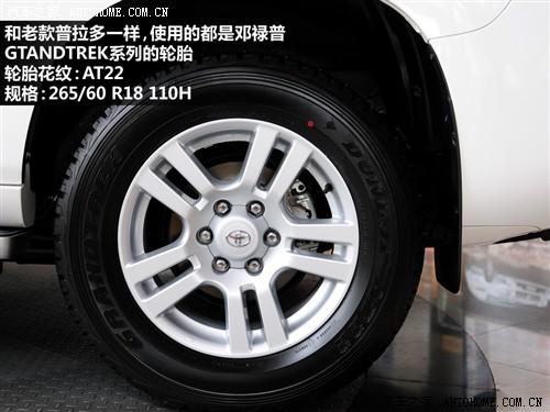 在輪胎和備胎方面,普拉多仍然堅(jiān)持使用鄧祿普的GRANDTREK系列輪胎,只不過花紋從老款的AT20升級(jí)到AT22。另外,新款普拉多有備胎外掛和底盤內(nèi)藏兩種版本,外掛顯得很彪悍,但長時(shí)間使用的話會(huì)引起尾門的變形,從而產(chǎn)生噪音和密封性的問題,這點(diǎn)老款普拉多車主經(jīng)常抱怨,當(dāng)然好處是車輛有足夠的位置設(shè)計(jì)副油箱,從而增加續(xù)航里程。進(jìn)口和國產(chǎn)的新款普拉多選擇了將備胎隱藏在底盤下面的版本。
