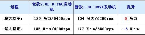 老款景程使用的是一款直列四缸的2.0L發(fā)動機(jī),最大功率只有129馬力(95kW),最大扭矩為185牛米,對于一款2.0L的發(fā)動機(jī)來說,這樣的數(shù)據(jù)確實有些不理想。而2010款景程更換了科魯茲的1.8L DVVT發(fā)動機(jī),其采用Ecotec技術(shù),最大功率達(dá)到134馬力,最大扭矩為177牛米。在排量降低的情況下仍實現(xiàn)了最大功率的反超。