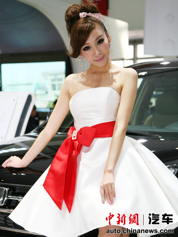 北京車展群芳競艷:靚模一襲白裙秀香肩