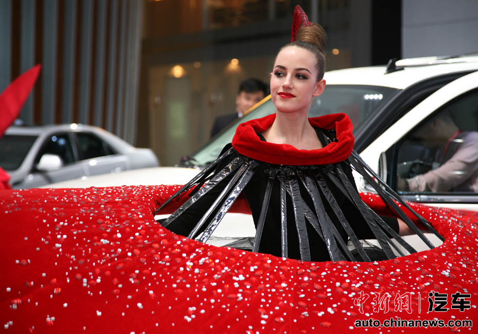 “第十一屆北京國際車展”是名車新品搶先亮相的舞臺,也成了車模們爭奇斗艷的場所,參觀者在車展中可以享受兩道視覺大餐。王崢 攝