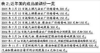 從國家發(fā)改委獲悉,我國石油消費近50%依靠國外進口,國際油價的上漲使國內成品油煉制企業(yè)成本劇增,批零倒掛的局面令煉油廠長期承擔著巨額虧損,一直處于“饅頭賣不過面粉價”的狀態(tài)。按每桶80美元計算,煉油企業(yè)每生產(chǎn)一噸成品油虧損1000元。因此,面對國際原油價格的驚人漲勢,國內成品油價格陷入了不得不調整的境地。另外,既然由政府決定是否調價,那政府就不能僅從經(jīng)濟角度出發(fā),社會輿論、社會穩(wěn)定和弱勢群體的利益都是慎重調價的前提。而選在11月1日這天提高國內成品油價格,國家考慮了各行業(yè)的承受能力,如農業(yè)“三秋”已近尾聲,農民對柴油的需求量減少等。
