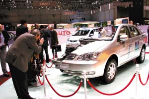在今年的日內(nèi)瓦車展,比亞迪展出F3DM雙模混合動力車剖面車。