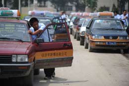 由于近日汽油價格上漲,天然氣價格不變,臨汾市出租車出于對運(yùn)營成本考慮,眾多司機(jī)寧肯長時間排隊前來加氣。(江宏景)
