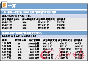 業(yè)內(nèi)預(yù)測(cè),國(guó)家開(kāi)征燃油稅后稅率將在30%~50%之間。以該車主的1.8L排量車型計(jì)算,假設(shè)一年行駛里程為15000公里左右,平均油耗為8.5升/百公里左右,每年需加1275升油。按照目前廣州93號(hào)油零售價(jià)每升6.25元計(jì)算,車主每年在油費(fèi)上需要支出7968.75元,加上養(yǎng)路費(fèi)1000元,目前每年這部分的總花費(fèi)為8968.75元。