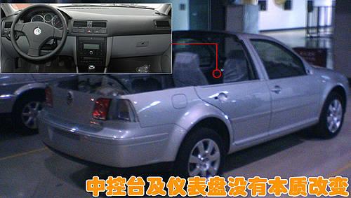 寶來(lái)皮卡與寶來(lái)經(jīng)典版車型的不同之處,主要體現(xiàn)在第二排座椅和后備箱與貨箱的差異。而在內(nèi)飾方面,寶來(lái)皮卡依然裝配寶來(lái)經(jīng)典版車型的中控臺(tái)。寶來(lái)皮卡版車型可能是一汽大眾廠區(qū)內(nèi)部用車,但也不排除批量生產(chǎn)的可能。