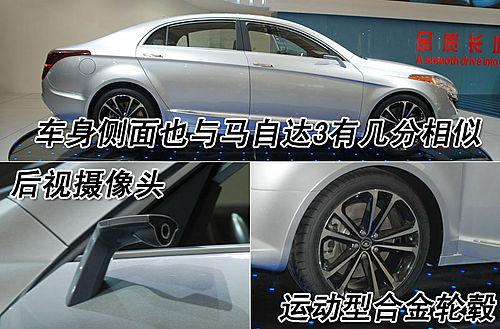 作為長(zhǎng)城汽車(chē)的首款C級(jí)車(chē),CHC011的前臉與新馬自達(dá)3非常相似,尤其是進(jìn)氣格柵的造型。這款產(chǎn)品目前還是概念車(chē)型,大燈采用的是柳葉型設(shè)計(jì),不知道量產(chǎn)后會(huì)不會(huì)有太大的變化。