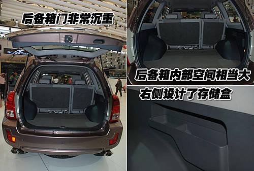 威麟X5的后備箱門非常沉重,雖然采用液壓挺桿支撐,淡開啟還需費(fèi)些力氣。行李箱內(nèi)的空間非常大,就算再多一排座椅也完全可以接受。行李箱右側(cè)設(shè)計(jì)了存儲(chǔ)盒,可以放置一些工具等物品。