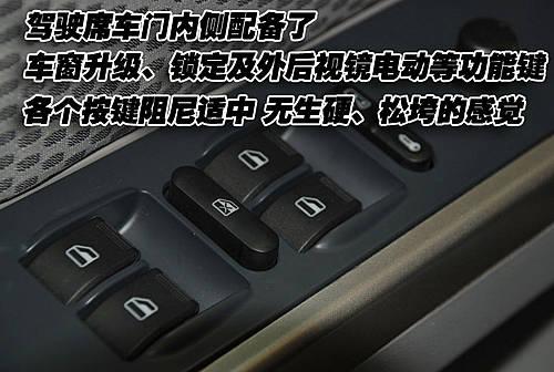 這款車的駕駛席車門內(nèi)側(cè)配備了控制面板,帶有車窗升降、鎖定、中控鎖及外后視鏡電動(dòng)調(diào)節(jié)等功能。各個(gè)按鍵阻尼適中,無生硬、松垮的感覺。