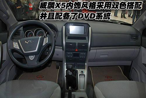 威麟X5不僅外觀非常兇悍,內(nèi)飾的風(fēng)格同樣比較硬朗。在內(nèi)飾顏色布局方面,這款車采用雙色調(diào)設(shè)計(jì),整車的內(nèi)部機(jī)構(gòu)設(shè)計(jì)都與奇瑞其他車型有不同的感覺。