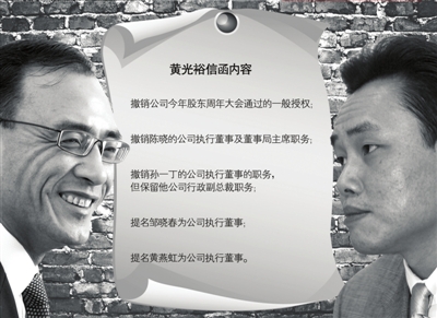 8月5日,國美電器公告,將對公司間接持股股東及前任執(zhí)行董事黃光裕提出法律訴訟,包括關(guān)于其于2008年1月及2月前后回購公司股份中被指稱的違反公司董事的信托責(zé)任及信任的行為尋求賠償。公告同時(shí)披露,黃光裕要求撤銷陳曉的公司執(zhí)行董事和董事局主席職務(wù)、撤銷孫一丁的公司執(zhí)行董事的職務(wù),但保留他為公司行政副總裁職務(wù)等動議。這份火藥味十足的公告,被稱為是黃光裕與國美電器現(xiàn)任董事局主席陳曉決裂的標(biāo)志。