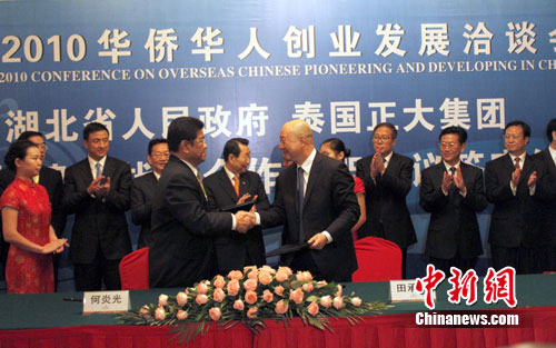15日晚間出席簽約儀式的正大集團董事局主席謝國民指出,在中國新農(nóng)村建設(shè)的過程中,正大集團通過為農(nóng)民提供其缺乏的資金、技術(shù)、管理和市場并采取擔保等方式,幫助農(nóng)民規(guī)避風(fēng)險,增加收入。正大集團希望與中國農(nóng)業(yè)大省湖北在農(nóng)業(yè)等領(lǐng)域開展合作。