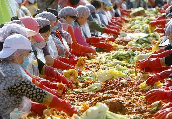 農(nóng)林水產(chǎn)食品部官員李貞植(音)說,韓國人每年消耗145萬噸泡菜。其中,45萬噸由工廠制作,其余由家庭或餐館制作。