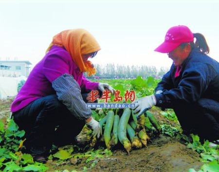 記者了解到,1999年,寒亭區(qū)“濰縣蘿卜”商標(biāo)注冊(cè)成功,同年,濰縣蘿卜被確認(rèn)為中國國際農(nóng)業(yè)博覽會(huì)的名牌產(chǎn)品,之后又通過國家綠色食品認(rèn)證。自此之后濰坊的蘿卜也成為大家口耳相傳的名蘿卜了!昂^(qū)下屬六個(gè)街道,種植濰縣蘿卜的主要有兩條街道,種植土地已經(jīng)達(dá)到了5.2萬畝!焙^(qū)宣傳部金主任笑著說。