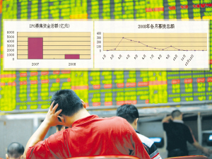 從2008年1月1日至今,上證綜指從高點(diǎn)5522點(diǎn)跌至12月12日的1954點(diǎn),下跌幅度超過60%。市場深幅調(diào)整不僅使投資者“巨虧”,同時也讓IPO規(guī)模大幅縮水。