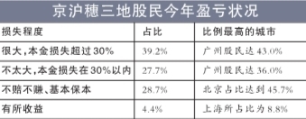 另有調(diào)查顯示,在今年的股市中,京滬穗三地受訪股民賠多于賺,2/3的股民有不同程度的損失,其中以廣州受訪股民損失最大。(記者敖曉波)