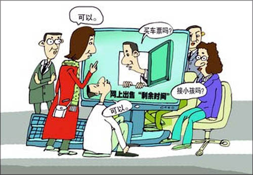 在搜索引擎百度上輸入“出售剩余時(shí)間”,可得到相關(guān)網(wǎng)頁(yè)400多萬(wàn)篇,“出售時(shí)間”生意的火爆可見(jiàn)一斑。“你想干什么我來(lái)幫你完成,給你節(jié)約時(shí)間,用我的時(shí)間來(lái)給你辦事,然后你支付一定的費(fèi)用,這就是‘出售剩余時(shí)間’!本W(wǎng)友劉女士在廣告上如此解釋“出售剩余時(shí)間”。