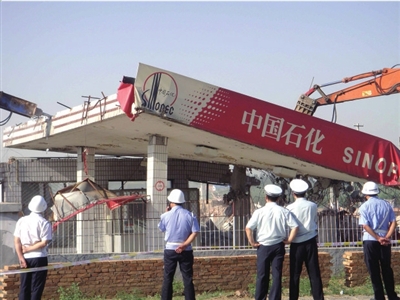 中石化北京分公司相關(guān)負(fù)責(zé)人介紹,該加油站此前被列入一條在建輕軌的規(guī)劃范圍,公司準(zhǔn)備與相關(guān)部門商討采取“拆一還一,先建后拆”的模式,但一直未能和相關(guān)部門達(dá)成協(xié)議。此次加油站突遭強(qiáng)拆,中石化北京分公司方面表示難以接受。