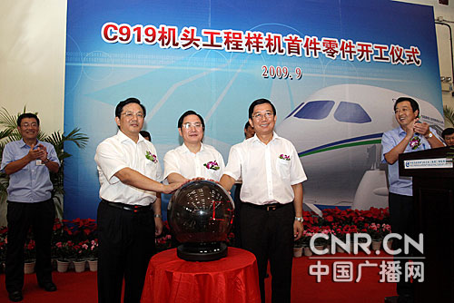 9月1日,中國(guó)C919大型客機(jī)項(xiàng)目機(jī)頭工程樣機(jī)在中航工業(yè)成飛民機(jī)公司隆重開工,標(biāo)志著中國(guó)自主設(shè)計(jì)制造的C919大型客機(jī)項(xiàng)目取得了階段性的突破。中國(guó)商飛總經(jīng)理金壯龍,中共四川省委常委、成都市委書記李春城,中航工業(yè)副總經(jīng)理顧惠忠,中國(guó)商飛副總經(jīng)理羅榮懷、吳光輝等領(lǐng)導(dǎo)出席了開工儀式。