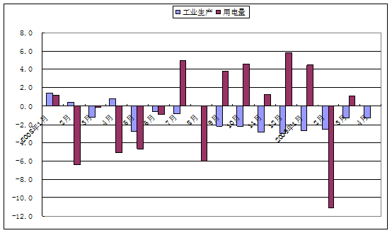 工業(yè)生產(chǎn)增長(zhǎng)與用電量增長(zhǎng)不一致。去年6月份和7月份,美國(guó)工業(yè)生產(chǎn)同比分別下降0.1%和0.7%,而發(fā)電量同比卻分別增長(zhǎng)2.7%和2.3%;5月份工業(yè)生產(chǎn)增長(zhǎng)0.2%,而發(fā)電量卻下降1.7%。今年1月份和3月份,歐元區(qū)工業(yè)生產(chǎn)環(huán)比分別下降2.7%和1.3%,而用電量環(huán)比分別增長(zhǎng)4.1%和1.1%;2008年的12個(gè)月份中,工業(yè)生產(chǎn)環(huán)比變化與用電量變化方向不一致的月份有8個(gè)之多。去年7月至9月,日本工業(yè)生產(chǎn)同比分別下降0.2%、5.7%和4%,而用電量卻分別增長(zhǎng)6.5%、0%和0.6%。