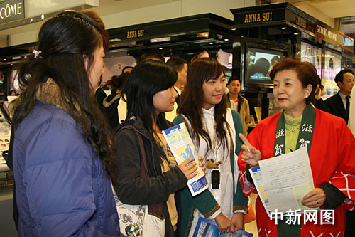 10月31日,日本滋賀縣知事嘉田由紀(jì)子(右一)在湖南平和堂商場向消費(fèi)者推介滋賀縣的旅游資源。作 者:鄧霞