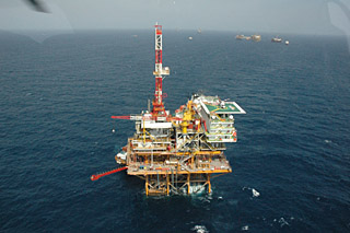 圖:墨西哥灣上的采油鉆井。陳恃雷 攝 圖片來(lái)源:經(jīng)濟(jì)參考報(bào)