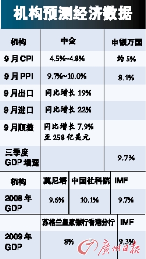 彭博社對(duì)12名經(jīng)濟(jì)學(xué)家進(jìn)行的調(diào)查數(shù)據(jù)平均值顯示,中國(guó)三季度GDP的增長(zhǎng)率同比將增長(zhǎng)9.7%,較上一季度的10.1%有所下滑。中國(guó)的制造業(yè)在今年第3季度受到了較大打擊,出口訂單減少,部分工廠關(guān)閉。8月的工業(yè)生產(chǎn)增長(zhǎng)率為6年來的最低值。股價(jià)和房地產(chǎn)市場(chǎng)的低迷仍在持續(xù),分析師預(yù)計(jì),中國(guó)三季度經(jīng)濟(jì)增長(zhǎng)率為2004年第4季度以來的最低水平,而這將成為旨在防止經(jīng)濟(jì)惡化的降低利率政策以及財(cái)政支出的壓力。