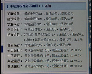 跨行通存通兌業(yè)務(wù)開通前四天,出現(xiàn)了叫好不叫座的情形,很多客戶其實也希望能享受這種便利,但是一看到銀行的收費標準,就打退堂鼓了。而記者也注意到,在各家銀行各自拿出的收費單上,門檻高的都是國有商業(yè)銀行,而那些股份制商業(yè)銀行收費卻普遍較低,中間相差最大的甚至達到了十倍,為什么同一個業(yè)務(wù),不同銀行之間的收費差距會這么大?