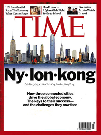 中新網(wǎng)1月20日電 著名雜志《時代》周刊在最新一期選了紐約、倫敦和香港三城作為全球化的模范,敘述這個以共同經(jīng)濟文化為特征的“三城故事”,文章并創(chuàng)造了一個新詞“紐倫港”(即紐約,倫敦,香港),指出認(rèn)識了這3個國際性大都會,即等同認(rèn)識了這個全球化時代。