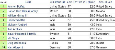 墨西哥電信大亨卡洛斯·斯利姆·埃盧(Carlos Slim Helu)個(gè)人資產(chǎn)達(dá)600億美元,位居全球第二位,而微軟主席比爾蓋茨雖然在過去13年里一直蟬聯(lián)首富桂冠,但其資產(chǎn)因微軟股價(jià)下跌而縮水為580億美元僅屈居第三。