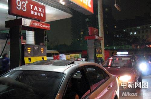 圖為6月19日深夜,北京部分司機獲悉成品油調(diào)價消息后,趕在20日凌晨零點前在加油站排起長龍加油。 記者 余瑞冬攝