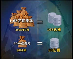 盡管高油價給美國本國也帶來影響,但譚雅玲認(rèn)為在美國的策略組合當(dāng)中,美元貶值可以化解他國內(nèi)石油價格上漲帶來的負(fù)面壓力,但是對其他國家的影響則全然不同,2001年,中國官方外匯儲備達(dá)2000億美元,國際石油價格在每桶25美元左右,中國可以購買80億桶;2008年3月,中國官方外匯儲備是世界第一,達(dá)到1.68萬億美元,以石油價格100美元計(jì)算,中國可以購買168億桶。也就是說,雖然中國外匯儲備增長7倍多,但真實(shí)購買力只是原來的1倍。德國經(jīng)濟(jì)學(xué)家,《石油戰(zhàn)爭》的作者威廉恩道爾在接受本欄目記者電話采訪時直接指出。