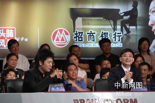郎朗與招商銀行辦公室主任秦季章在錄制節(jié)目現(xiàn)場