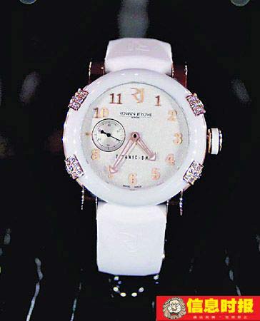 泰坦尼克傳奇腕表-R&J手表首次亮相華南是本次展會的一大亮點(diǎn)。記者在現(xiàn)場看到,以白色為主打色的該款手表配以金色指針,看上去十分典雅。據(jù)現(xiàn)場展商介紹,該款手表珍貴之處在于手表的制作材質(zhì)融入了泰坦尼克號殘骸的金屬材料。