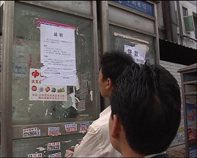 這就是他們倆頭一天交錢(qián)的地方,如今已是人去樓空,李美銳和肖方云白白損失了20塊錢(qián),不過(guò)最終在記者的建議下,兩人還是在幾經(jīng)打聽(tīng)后,來(lái)到了附近的一個(gè)勞動(dòng)力市場(chǎng),這是個(gè)很正規(guī)的中介機(jī)構(gòu),但在市場(chǎng)轉(zhuǎn)了一會(huì)后,兩人又碰到了一個(gè)難題。