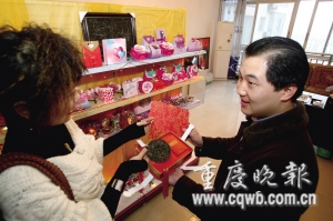“原來喜糖盒子還可以這么做。 睅е环形,兩人回到重慶開始籌劃自己的生意——開一家夫妻店,老婆負(fù)責(zé)設(shè)計,老公負(fù)責(zé)銷售。于是,2008年2月,他們的個性喜糖店在南坪中心地帶一家住宅小區(qū)附近正式開張了。