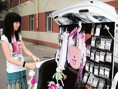 在張元的攤位兩邊,沿街停著一溜私家車。捷達、塞納、帕薩特,甚至還有顏色鮮艷的現(xiàn)代跑車和寶馬MINI。每輛車旁都擺著自家的攤位,服裝、鞋帽、飾品、化妝品、文具等等琳瑯滿目。