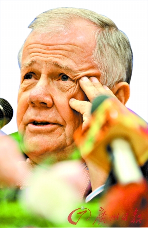 與索羅斯、巴菲特齊名的國際三大投資大師之一——吉姆·羅杰斯昨日出席了由中國貿(mào)易促進(jìn)委員會和廣州市政府主辦、廣州市貿(mào)促會承辦的第二屆中國國際金融服務(wù)貿(mào)易洽談會,他與本報記者對話國際經(jīng)濟(jì)危機(jī)的發(fā)展及演變趨勢時闡述了他的獨(dú)到觀點(diǎn)。