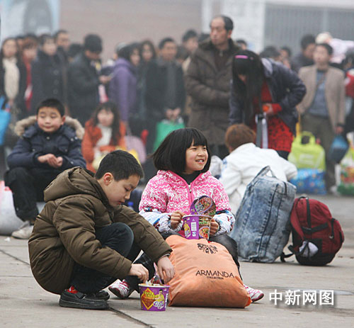 2月19日,正在仁壽車站內(nèi)候車的孩子。作 者:劉忠俊