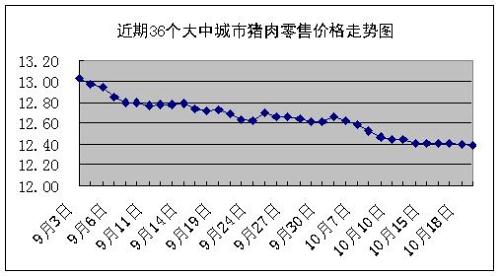 中新網(wǎng)10月22日電 國(guó)家發(fā)改委網(wǎng)站消息稱,據(jù)國(guó)家發(fā)展改革委價(jià)格監(jiān)測(cè)中心監(jiān)測(cè),上周(10.15-10.19,下同)全國(guó)36個(gè)大中城市豬肉(精瘦肉)集市平均零售價(jià)格每500克為12.40元,比上期(10.8-10.12,下同)下降0.48%。其中,16個(gè)城市豬肉價(jià)格小幅下降,其它城市豬肉價(jià)格與上期基本持平或略有上漲。