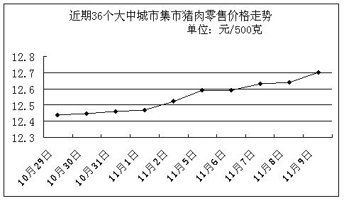 中新網(wǎng)11月12日電 國家發(fā)改委網(wǎng)站發(fā)布消息稱,據(jù)國家發(fā)展改革委價格監(jiān)測中心監(jiān)測,上周(11.5-11.9,下同)全國36個大中城市豬肉(精瘦肉)集市平均零售價格每500克為12.63元,比上期(10.29-11.2,下同)上漲1.28%。