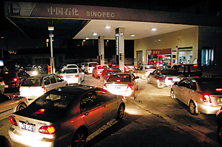 圖:漲價謠言瘋傳 油站夜排長龍 圖片來源:羊城晚報