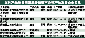 國(guó)家質(zhì)檢總局日前對(duì)50家企業(yè)生產(chǎn)的50種腐竹產(chǎn)品進(jìn)行監(jiān)督抽查,產(chǎn)品實(shí)物質(zhì)量抽樣合格率為96.1%,發(fā)現(xiàn)有3款腐竹違規(guī)添加禁用的“吊白塊”,另外還有兩款腐竹使用禁用的防腐劑山梨酸。食用含吊白塊的食品會(huì)引起過(guò)敏、腸道刺激等不良反應(yīng),嚴(yán)重者可產(chǎn)生中毒,令腎臟、肝臟受損。
