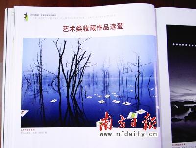 電話里,陳聯(lián)軍告訴記者,他愛好攝影,這次也投了稿。但7月底,陳聯(lián)軍把藝術(shù)類金獎作品《明天的現(xiàn)實》圖樣拿給廣告公司的同事看,結(jié)果同事們發(fā)現(xiàn),《明天的現(xiàn)實》的背景———被水淹沒的枯樹林與10年前他們所購買的《全球最新圖庫大百科》圖庫里一張未署名的相片如出一轍,只是調(diào)換了方位“翻了個身”。