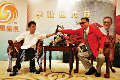 悵惘中的李敖,還有一件牽腸掛肚的大事,就是自己的兒子李戡。李敖對自己17歲的兒子很滿意,認(rèn)為是可塑之材,在“應(yīng)該沒有下一次了”的情況下,他很迫切地在記者面前推薦兒子!拔业膬鹤永铌@個月才過17歲,他在臺灣成長,受過教育的污染。這次考上了“國立”臺灣大學(xué),臺大和清華都錄取了他,但他最終還是選擇世界排名50位的北大。”李戡最近出了一本新書《李戡戡亂記》。李敖將兒子的新書在面前舉了又舉,讓記者拍照,還讓兒子坐到自己身邊。采訪開始前,劉長樂對記者說,有人說,李敖這次來是“托孤”的。