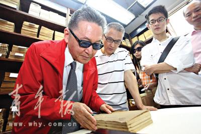 昨天一天可以概括為李敖在滬的“懷舊之旅”,因為這天李敖對于上海的拜訪,幾乎是從整個中國的古籍中穿梭而來,從上海博古齋到中共一大會議舊址,再到上海圖書館;尤其是在上海圖書館的簽名題字“頹乎其間,人書俱老”。他說:“站在這里,書有很久遠的歲月,它老了,而我也老了。”