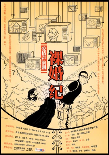 不是演唱會,不是音樂會,也不是一出單純的話劇,愛情聲演劇《裸婚紀(jì)》將于9月28日至10月10日在北京9劇場揭開神秘面紗。這出反映“80后”草根族面對婚戀窘境的小劇場話劇,除了有直指人心的臺詞、構(gòu)思巧妙的故事情節(jié)之外,還擁有一招充滿想象力的“殺手锏”——愛情聲演。