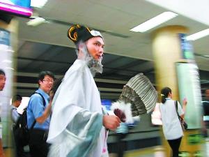 一位還算眉清目秀的年輕男子打扮成諸葛亮的樣子,在地鐵里忽而吟誦,忽而大笑,做出種種引人側(cè)目的動作。這是最近風靡網(wǎng)絡(luò)的又一個“神秘人物”。如此裝扮卻為何?是崇拜古人?是有?或者干脆就是網(wǎng)絡(luò)推手在炒作?由于這位“亮叔”手中拿著一本剛上市的新書,網(wǎng)友們懷疑最后一種的可能性最大。