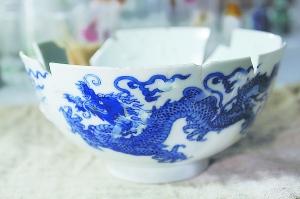 “這件文物就是在我手中獲得重生的!敝驹刚吲随面谜f,她從3月26日開工,拼出來的第一件瓷器就是這個雙龍戲珠碗。至今,她還清楚地記得,那天剛好是6月16日端午節(jié)。