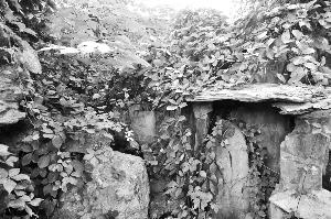 在“稱巖松”石刻背后不遠(yuǎn),更深地“隱藏”著一塊四周雕有花紋的石匾,從資料分析,這當(dāng)是當(dāng)年流落至此的另一重要文物——澤蘭堂乾隆御筆“熙春洞”,但刻字卻已模糊到幾乎湮滅無蹤的地步。