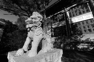 在文津街國家圖書館門前,一對威武的石獅滿面滄桑,雙爪和臀部還有修補的痕跡!皼]錯,這對劫后余生的石獅就是來自圓明園。”傳達(dá)室的守門人對石獅的來歷略知一二。石獅長170厘米,高約300厘米。上世紀(jì)30年代由圓明園移至此處。